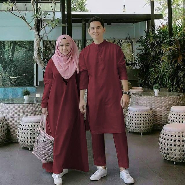 Set Baju Couple Kurta Dan Jubah Wanita Free Tudung Koko Marun Putih Hijau Brown Green Maroon Putih Fit L Shopee Malaysia